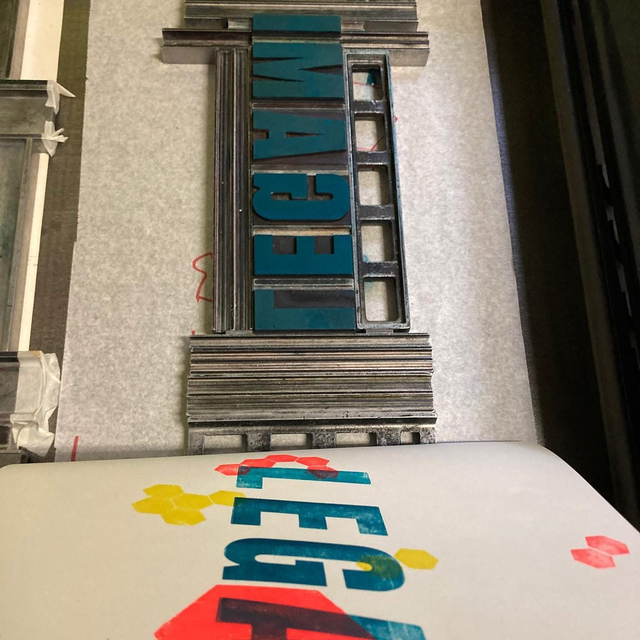 La copertina è stata ricavata da una prova di stampa del poster Legami, interamente inchiostrato e stampato a mano con tirabozze tipografico.
